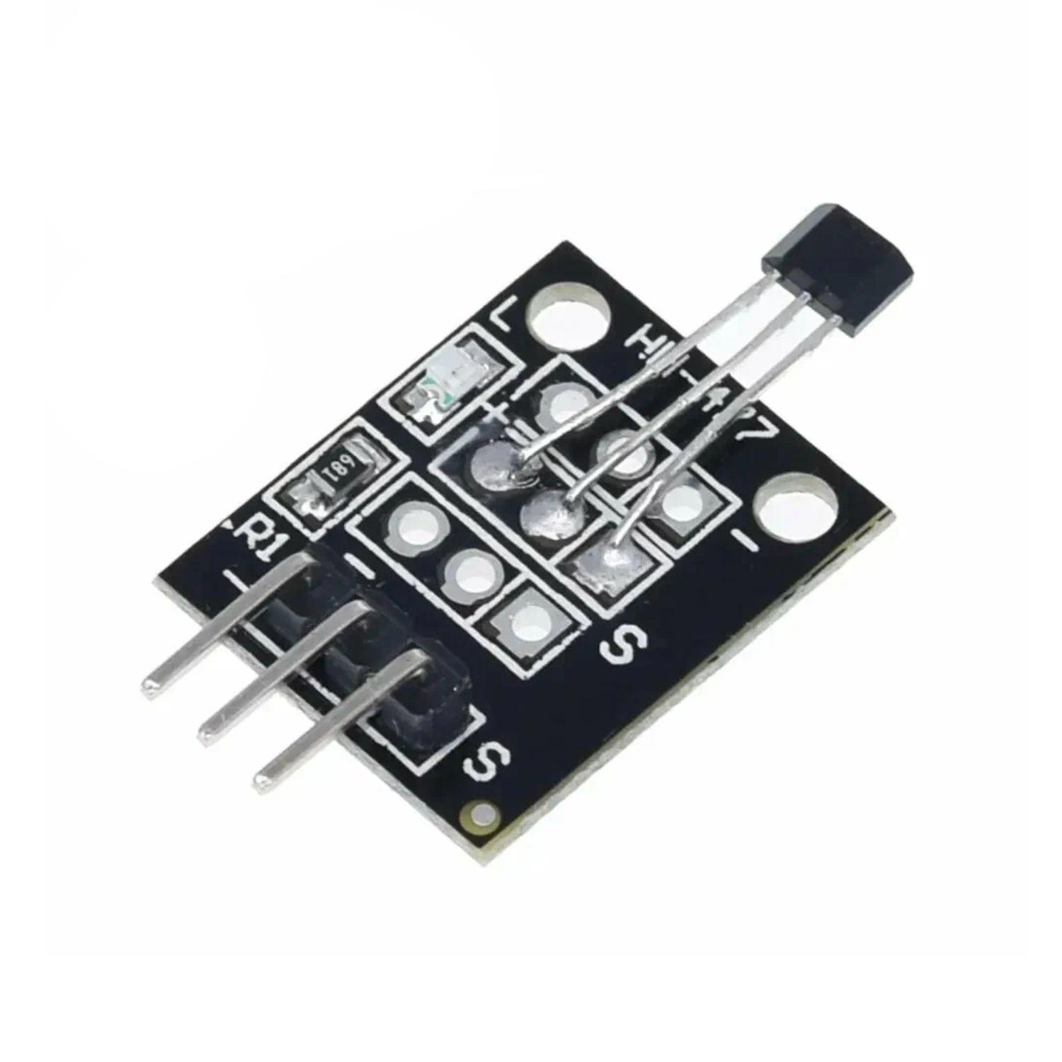 Плата с распаянным на ней униполярным датчиком Холла 3144 серии. Незаменима для применения с беспаечными макетными платами. Сам датчик А3144 уже содержит: стабилизатор напряжения, детектор магнитного поля, компаратор напряжения и ключ с открытым коллектором.